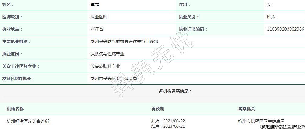 主要執(zhí)業(yè)機構:湖州吳興曙光威茲曼醫(yī)療美容門診部