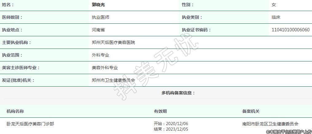 主要執(zhí)業(yè)機(jī)構(gòu):鄭州天后醫(yī)療美容醫(yī)院