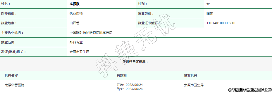 主要執(zhí)業(yè)機(jī)構(gòu):中國(guó)輻射防護(hù)研究院附屬醫(yī)院