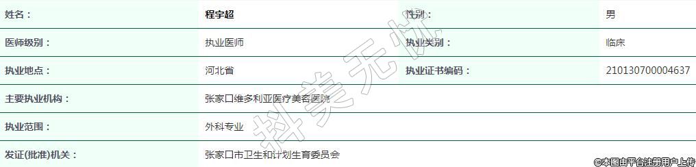 主要執(zhí)業(yè)機(jī)構(gòu):張家口維多利亞醫(yī)療美容醫(yī)院