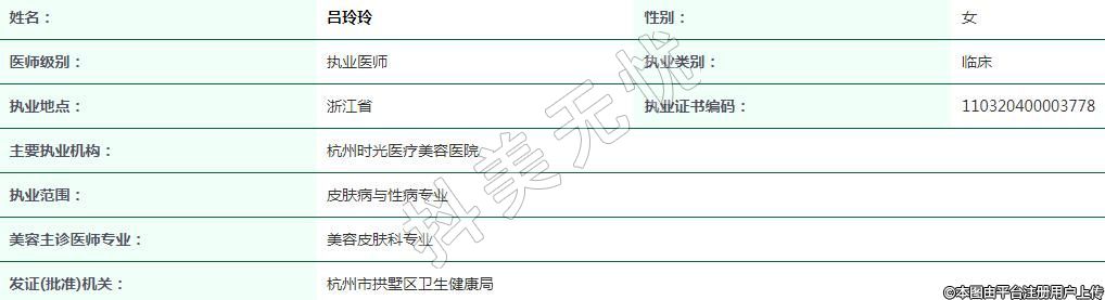 主要執(zhí)業(yè)機(jī)構(gòu):杭州時(shí)光醫(yī)療美容醫(yī)院