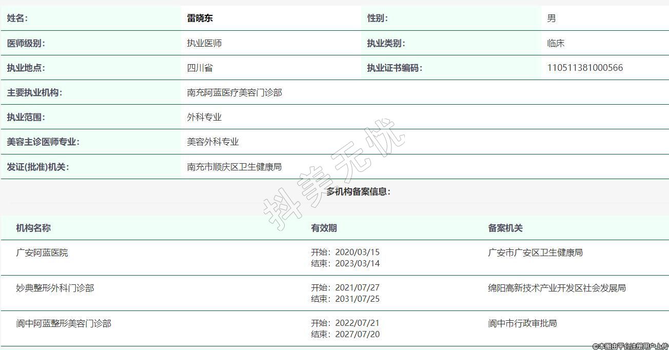 閬中阿藍(lán)整形美容門診部的醫(yī)師 -