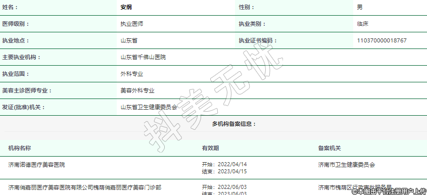 機(jī)構(gòu)名稱(chēng):濟(jì)南俏嘉麗醫(yī)療美容醫(yī)院有限公司槐蔭俏嘉麗醫(yī)療美容門(mén)診部
