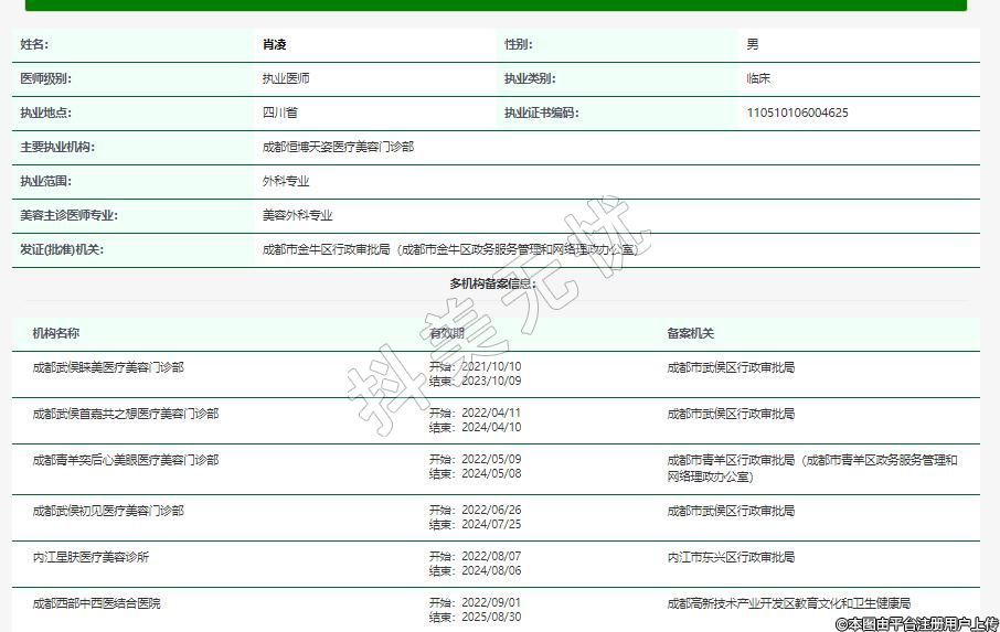 主要執(zhí)業(yè)機(jī)構(gòu):成都恒博天姿醫(yī)療美容門(mén)診部