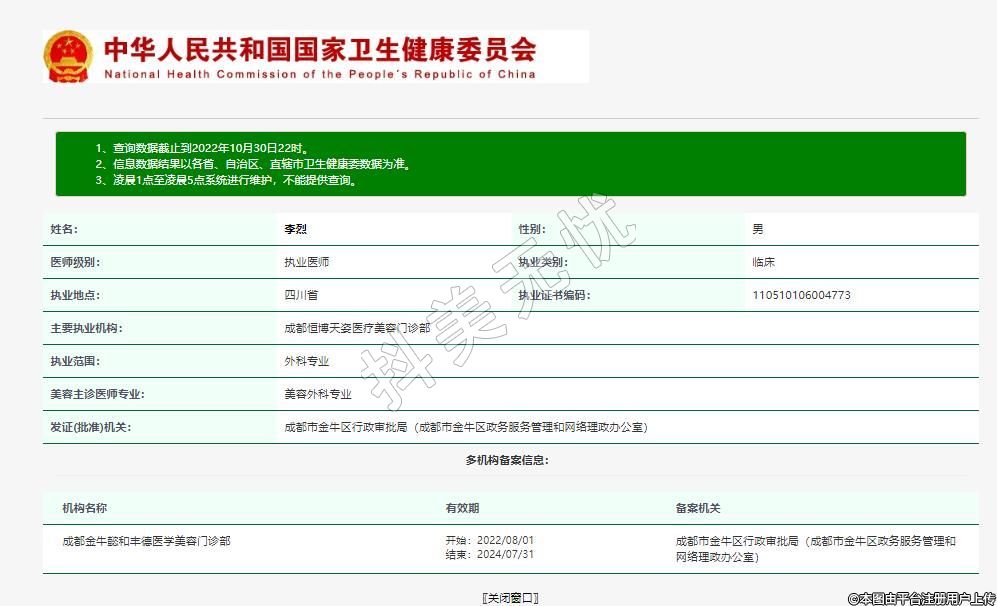 主要執(zhí)業(yè)機構:成都恒博天姿醫(yī)療美容門診部