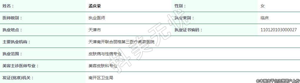 主要執(zhí)業(yè)機(jī)構(gòu):天津南開聯(lián)合麗格第三醫(yī)療美容醫(yī)院
