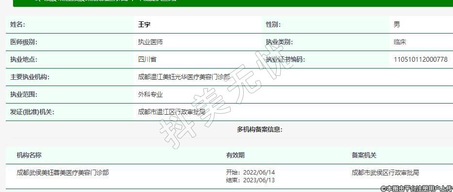 主要執(zhí)業(yè)機構(gòu):成都溫江美鈺光華醫(yī)療美容門診部