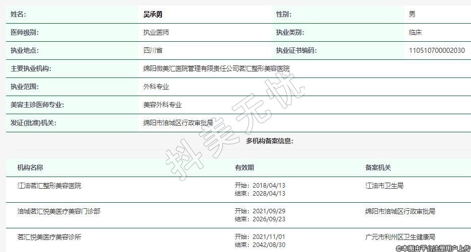 主要執(zhí)業(yè)機構:綿陽微美匯醫(yī)院管理有限責任公司茗匯整形美容醫(yī)院