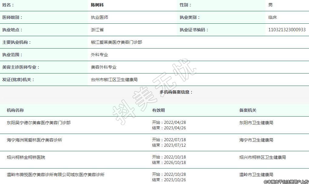 主要執(zhí)業(yè)機(jī)構(gòu):椒江愛萊美醫(yī)療美容門診部