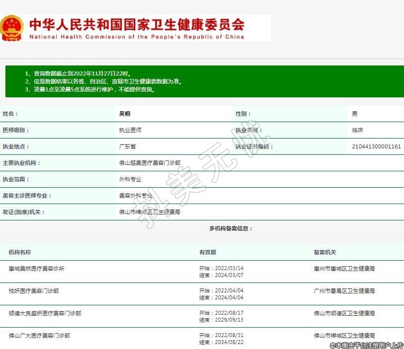 主要執(zhí)業(yè)機(jī)構(gòu):佛山超美醫(yī)療美容門(mén)診部