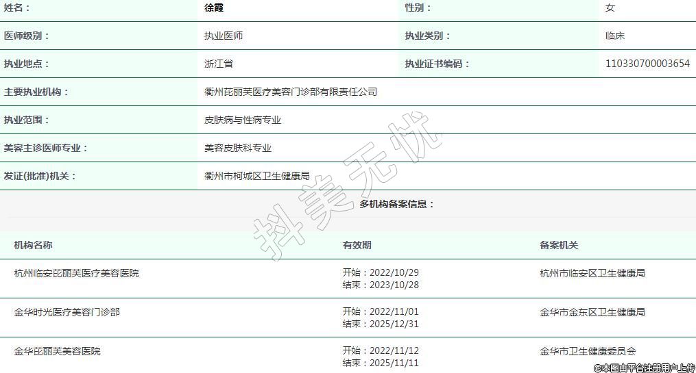 主要執(zhí)業(yè)機構:衢州芘麗芙醫(yī)療美容門診部有限責任公司