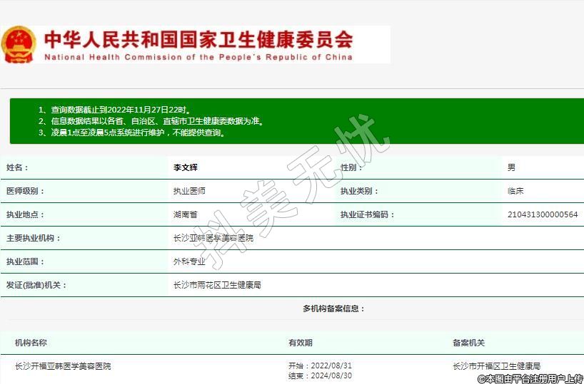 發(fā)證(批準(zhǔn))機(jī)關(guān):長(zhǎng)沙市雨花區(qū)衛(wèi)生健康局