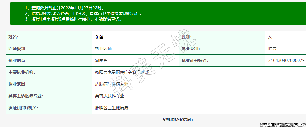 主要執(zhí)業(yè)機構(gòu):衡陽曹家易麗醫(yī)療美容門診部
