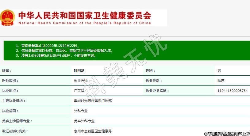 主要執(zhí)業(yè)機構(gòu):惠城時光醫(yī)療美容門診部