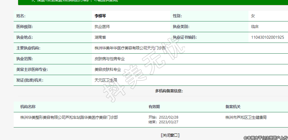 主要執(zhí)業(yè)機(jī)構(gòu):株洲華美年華醫(yī)療美容有限公司天元門(mén)診部