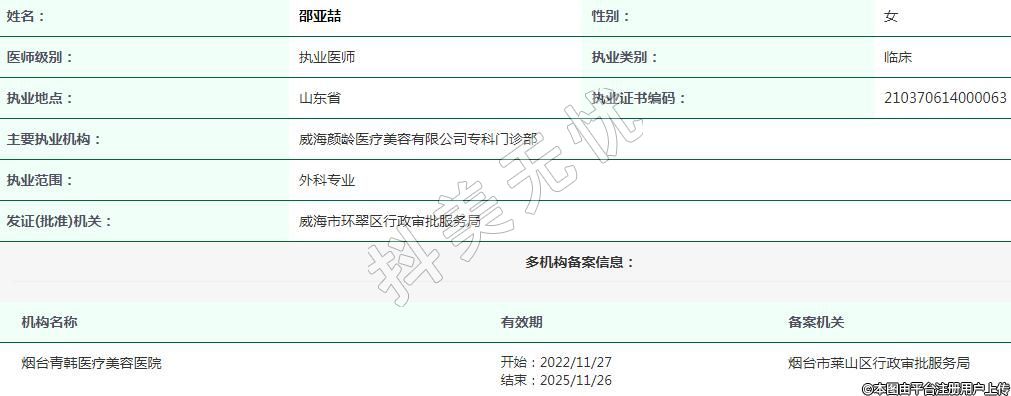 煙臺青韓醫(yī)療美容執(zhí)業(yè)醫(yī)師