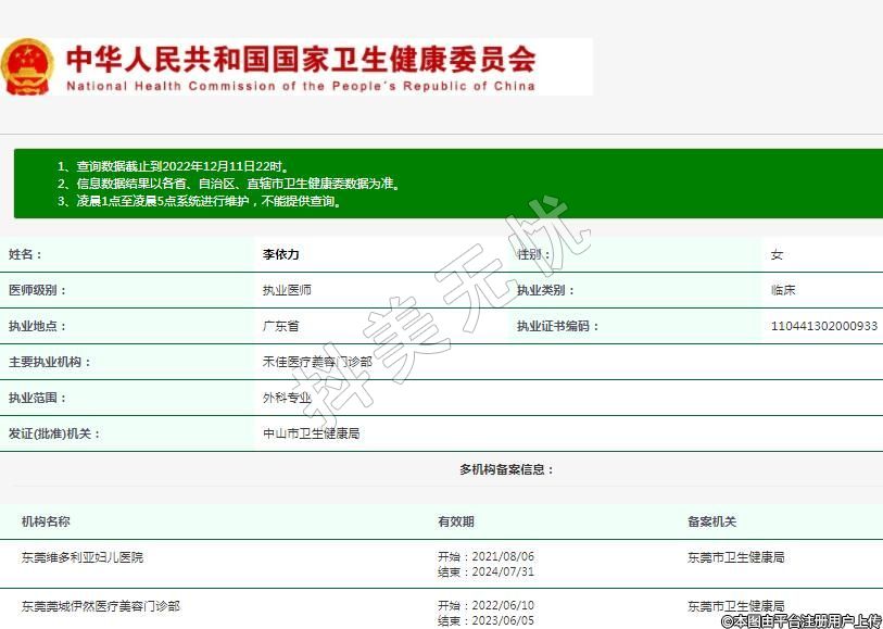 主要執(zhí)業(yè)機(jī)構(gòu):禾佳醫(yī)療美容門診部