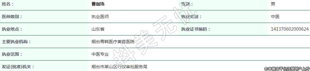 主要執(zhí)業(yè)機構(gòu):煙臺青韓醫(yī)療美容醫(yī)院