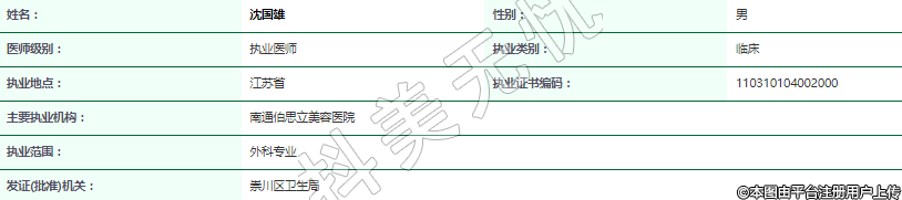 主要執(zhí)業(yè)機構:南通伯思立美容醫(yī)院