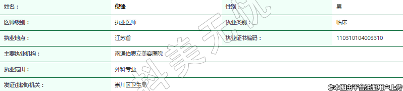 主要執(zhí)業(yè)機構(gòu):南通伯思立美容醫(yī)院