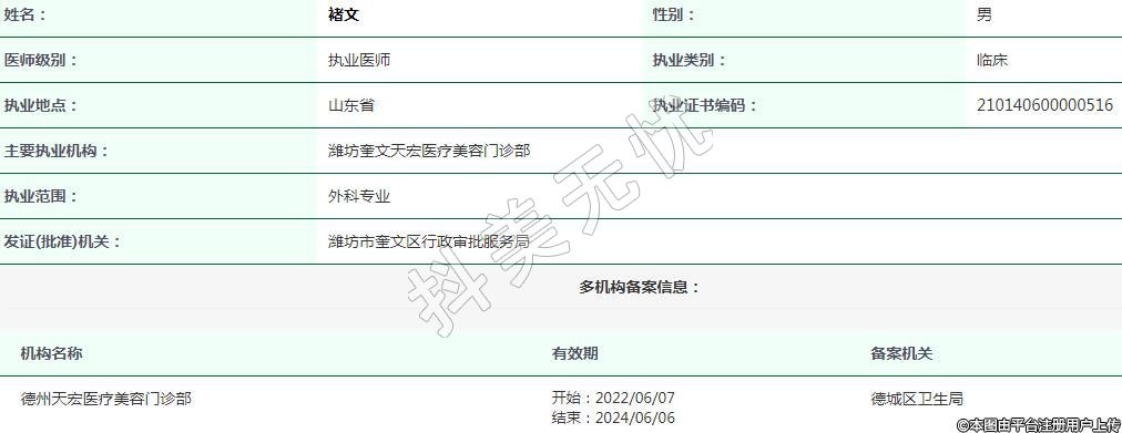 主要執(zhí)業(yè)機(jī)構(gòu):濰坊奎文天宏醫(yī)療美容門診部