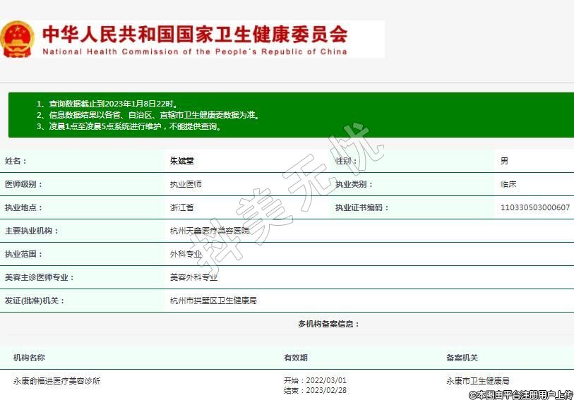 主要執(zhí)業(yè)機(jī)構(gòu):杭州天鑫醫(yī)療美容醫(yī)院