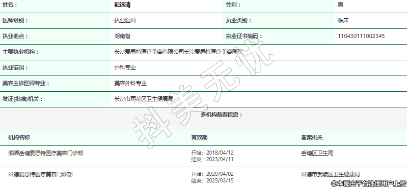 主要執(zhí)業(yè)機構:長沙愛思特醫(yī)療美容有限公司長沙愛思特醫(yī)療美容醫(yī)院