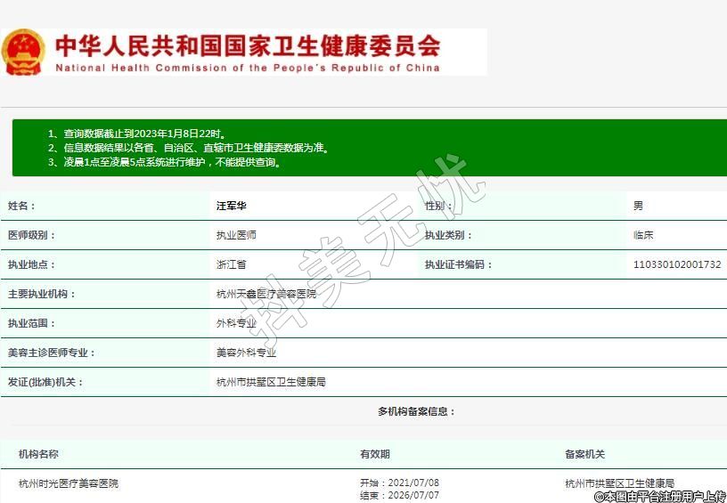 主要執(zhí)業(yè)機(jī)構(gòu):杭州天鑫醫(yī)療美容醫(yī)院