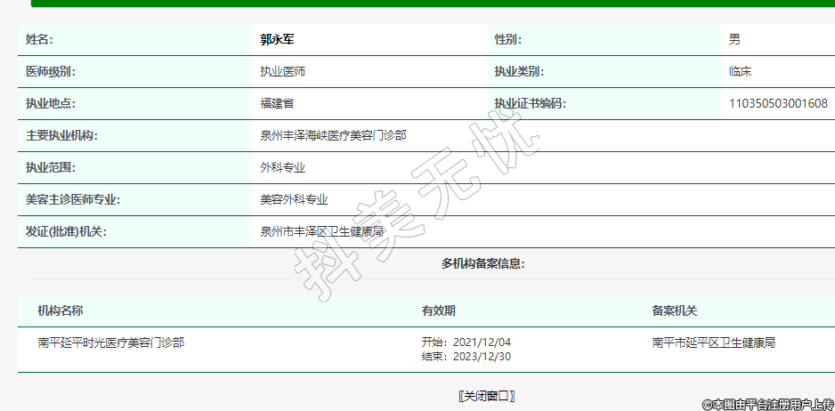 主要執(zhí)業(yè)機構(gòu):泉州豐澤海峽醫(yī)療美容門診部