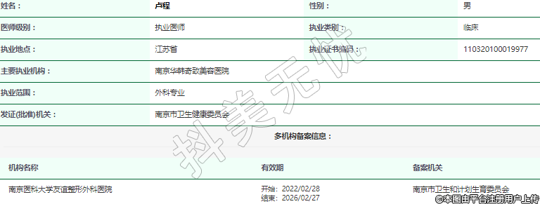 主要執(zhí)業(yè)機構(gòu):南京華韓奇致美容醫(yī)院
