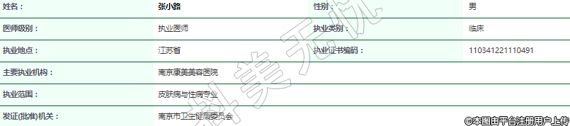 主要執(zhí)業(yè)機構(gòu):南京康美美容醫(yī)院