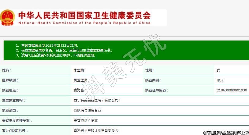 主要執(zhí)業(yè)機構(gòu):西寧韓美美容醫(yī)院(有限公司)
