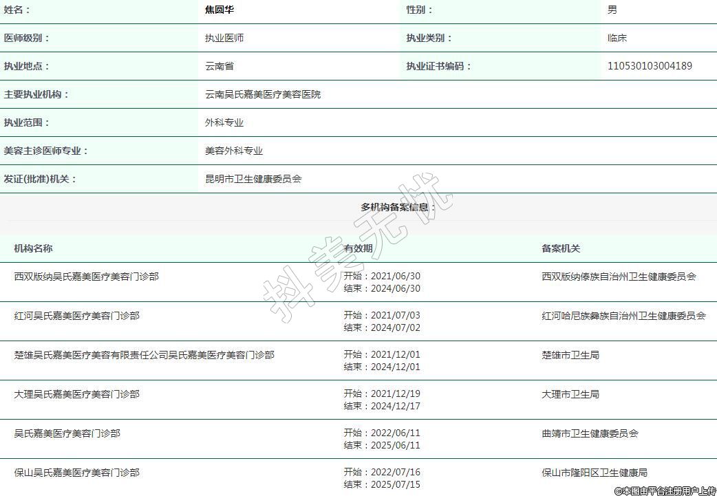 主要執(zhí)業(yè)機(jī)構(gòu):云南吳氏嘉美醫(yī)療美容醫(yī)院