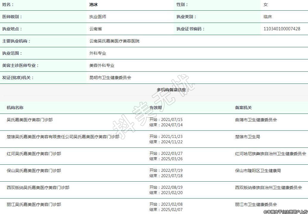 昆明吳氏嘉美執(zhí)業(yè)醫(yī)生