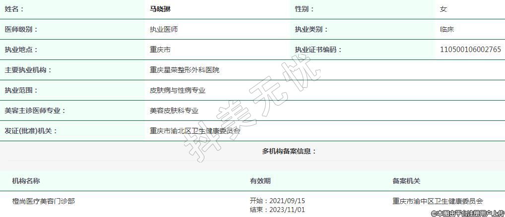 發(fā)證(批準)機關:重慶市渝北區(qū)衛(wèi)生健康委員會