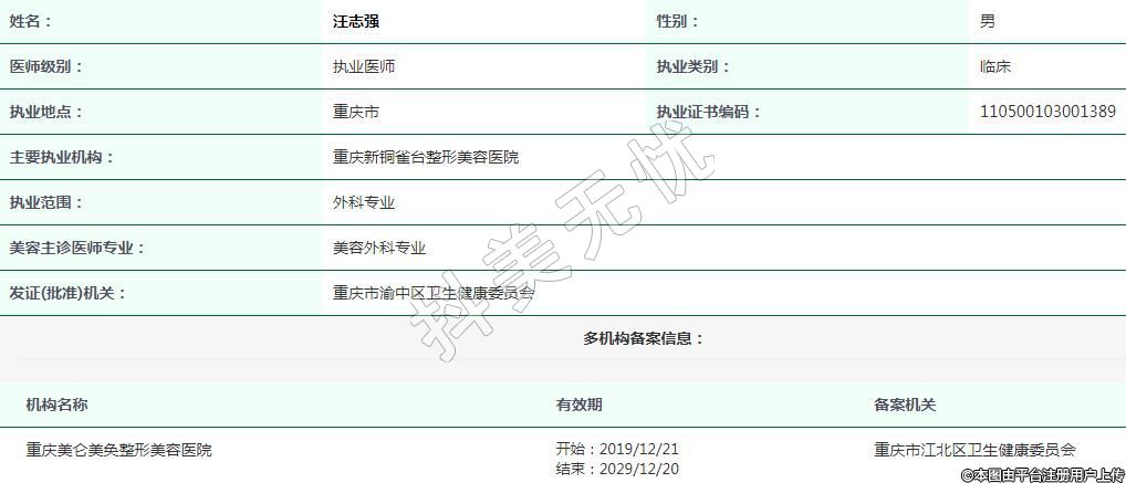重慶新銅雀臺(tái)醫(yī)療美容執(zhí)業(yè)醫(yī)師