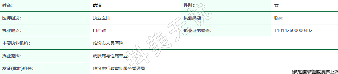 執(zhí)業(yè)范圍:皮膚病與性病專(zhuān)業(yè)