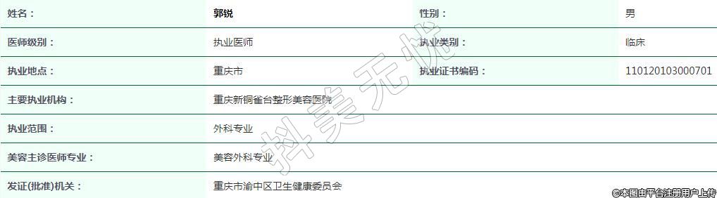 重慶新銅雀臺醫(yī)療美容執(zhí)業(yè)醫(yī)師