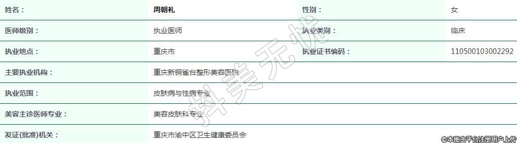 重慶新銅雀臺(tái)醫(yī)療美容執(zhí)業(yè)醫(yī)師