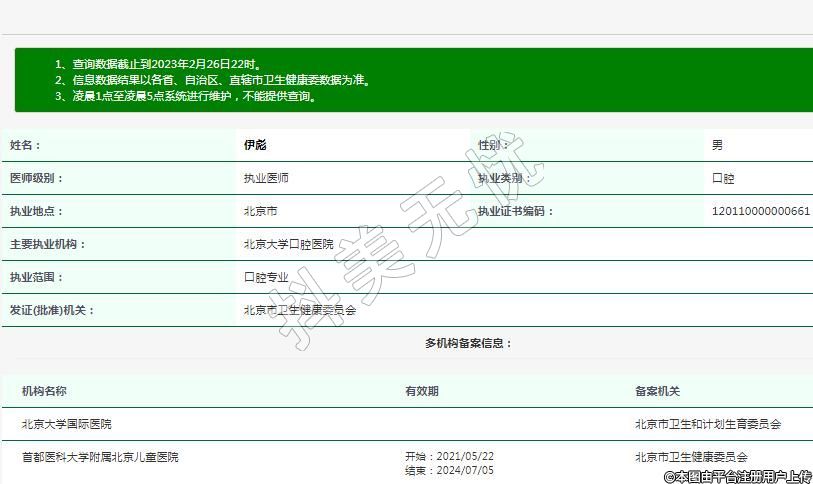 主要執(zhí)業(yè)機構(gòu):北京大學(xué)口腔醫(yī)院