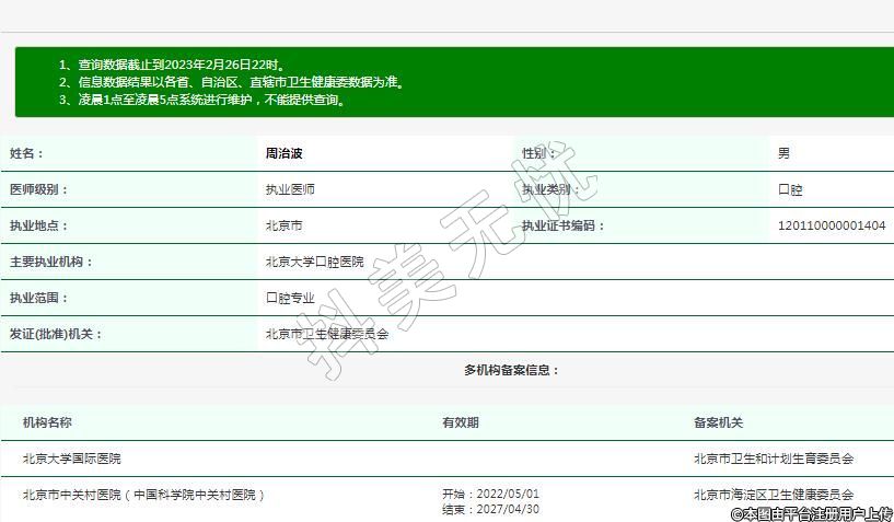 主要執(zhí)業(yè)機(jī)構(gòu):北京大學(xué)口腔醫(yī)院