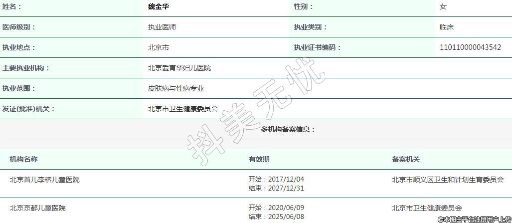 北京愛育華婦兒醫(yī)院醫(yī)療美容執(zhí)業(yè)醫(yī)生