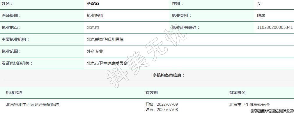 北京愛育華婦兒醫(yī)院醫(yī)療美容執(zhí)業(yè)醫(yī)生