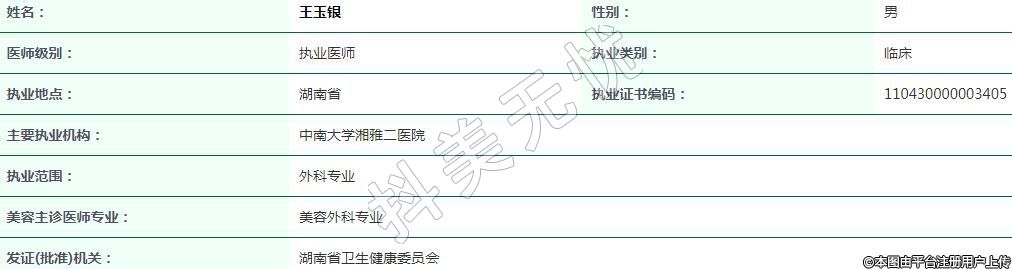 中南大學(xué)湘雅二醫(yī)院整形美容執(zhí)業(yè)醫(yī)生