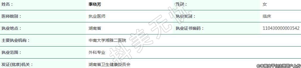 中南大學(xué)湘雅二醫(yī)院整形美容執(zhí)業(yè)醫(yī)生