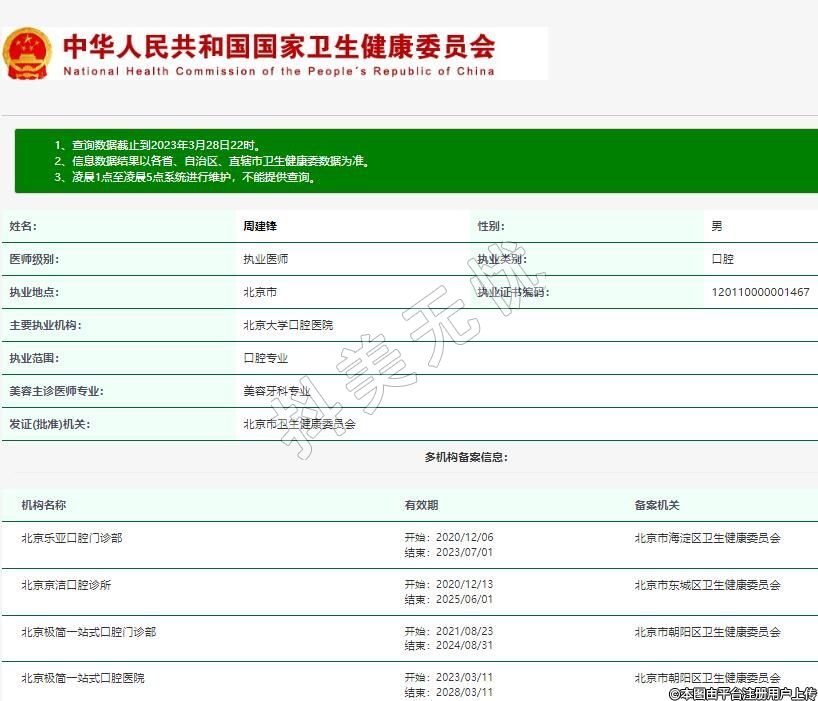 主要執(zhí)業(yè)機構(gòu):北京大學(xué)口腔醫(yī)院