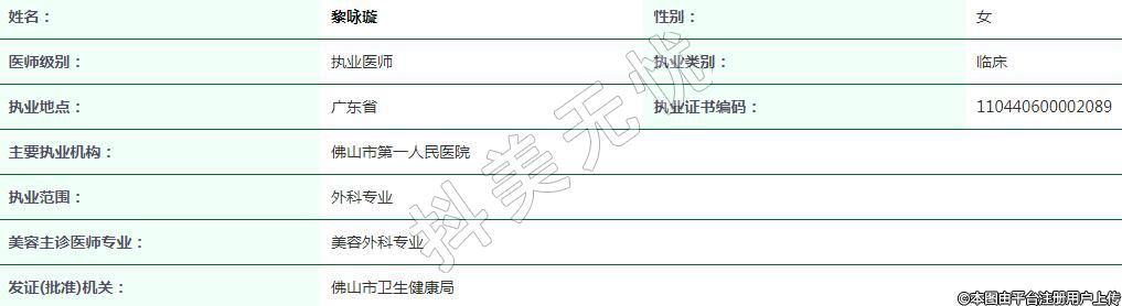 佛山市第一人民醫(yī)院整形美容執(zhí)業(yè)醫(yī)生