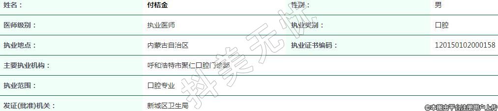 主要執(zhí)業(yè)機(jī)構(gòu):呼和浩特市聚仁口腔門診部