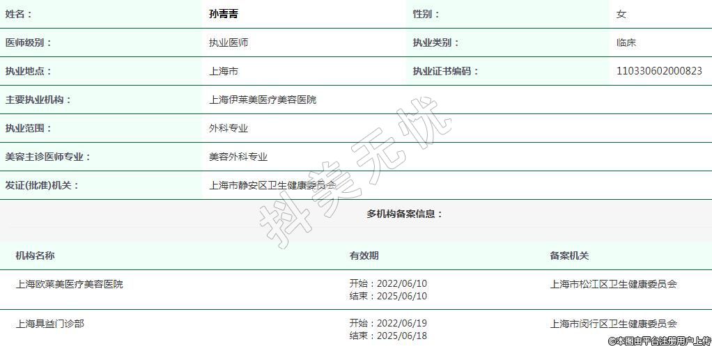 上海伊萊美醫(yī)療美容執(zhí)業(yè)醫(yī)師
