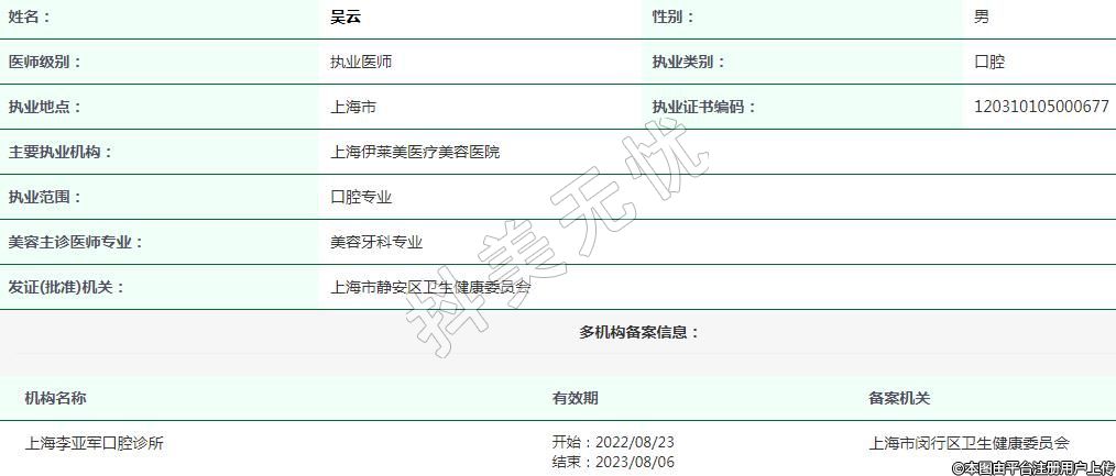 上海伊萊美醫(yī)療美容執(zhí)業(yè)醫(yī)師